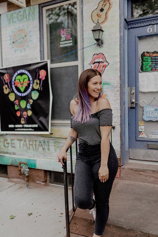 As a traveling wedding photographer, with her Sarah Benn Photography studios located in York, “my job involved being creative, speaking with people 24/7, but I wasn’t able to apply myself 100 percent, with my job or with my family,” Ben says. After watching the documentary What the Health, she decided to cut out all dairy and additional meat. By January 1, 2018, she struck eggs from her diet, going completely vegan.
